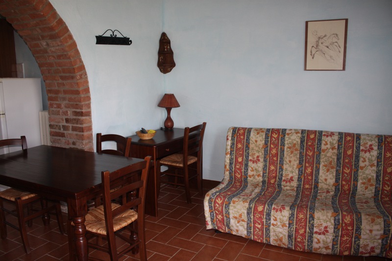 L'appartamento "Fienile" è un trilocale di 65 mq posto al primo piano; dispone di un soggiorno-tinello con angolo cottura e divano letto due piazze; bagno con doccia e due camere di cui una matrimoniale e una con due letti singoli +1.